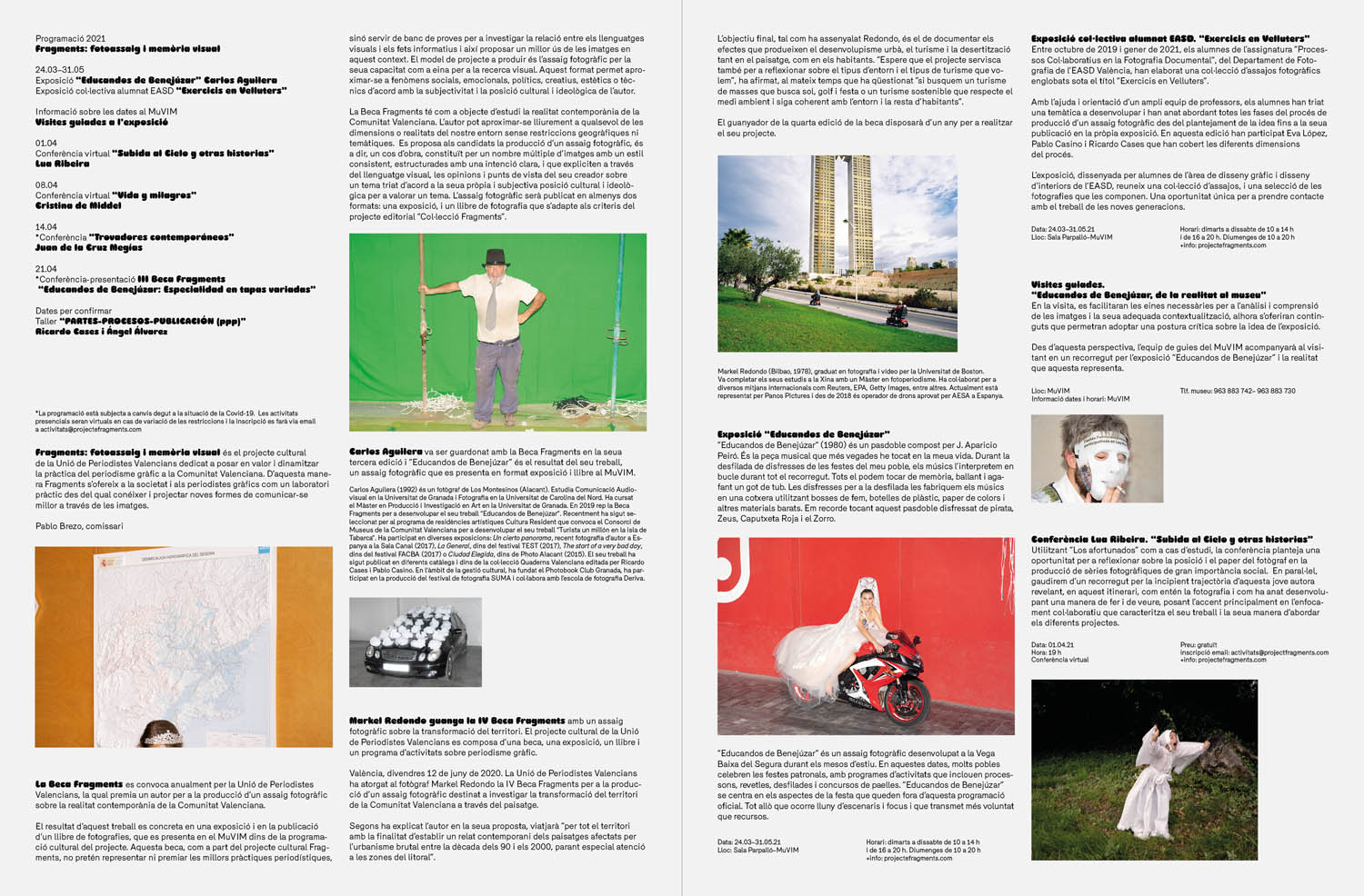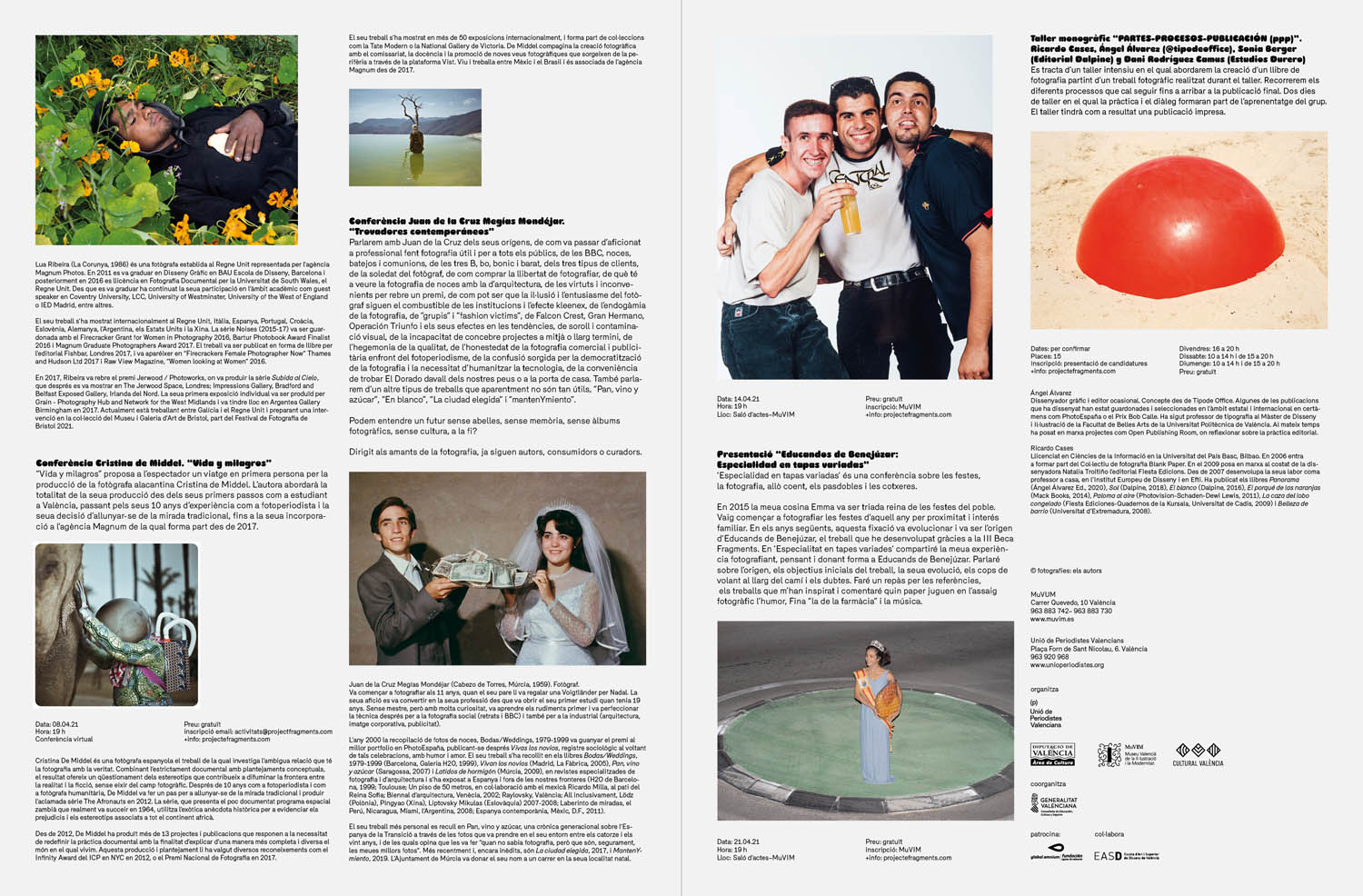 I worked as a consultant and designer for the 2021 Fragments program. “Fragments: photoessays and visual memory”is a cultural project dedicated to research into, and the practice of, photojournalism in order to construct a contemporary Valencian visual memory. Work is published at an annual cultural event that involves conferences, workshops, along with an exhibition and photobook. This project was carried out with the assistance of Álex Bellón.