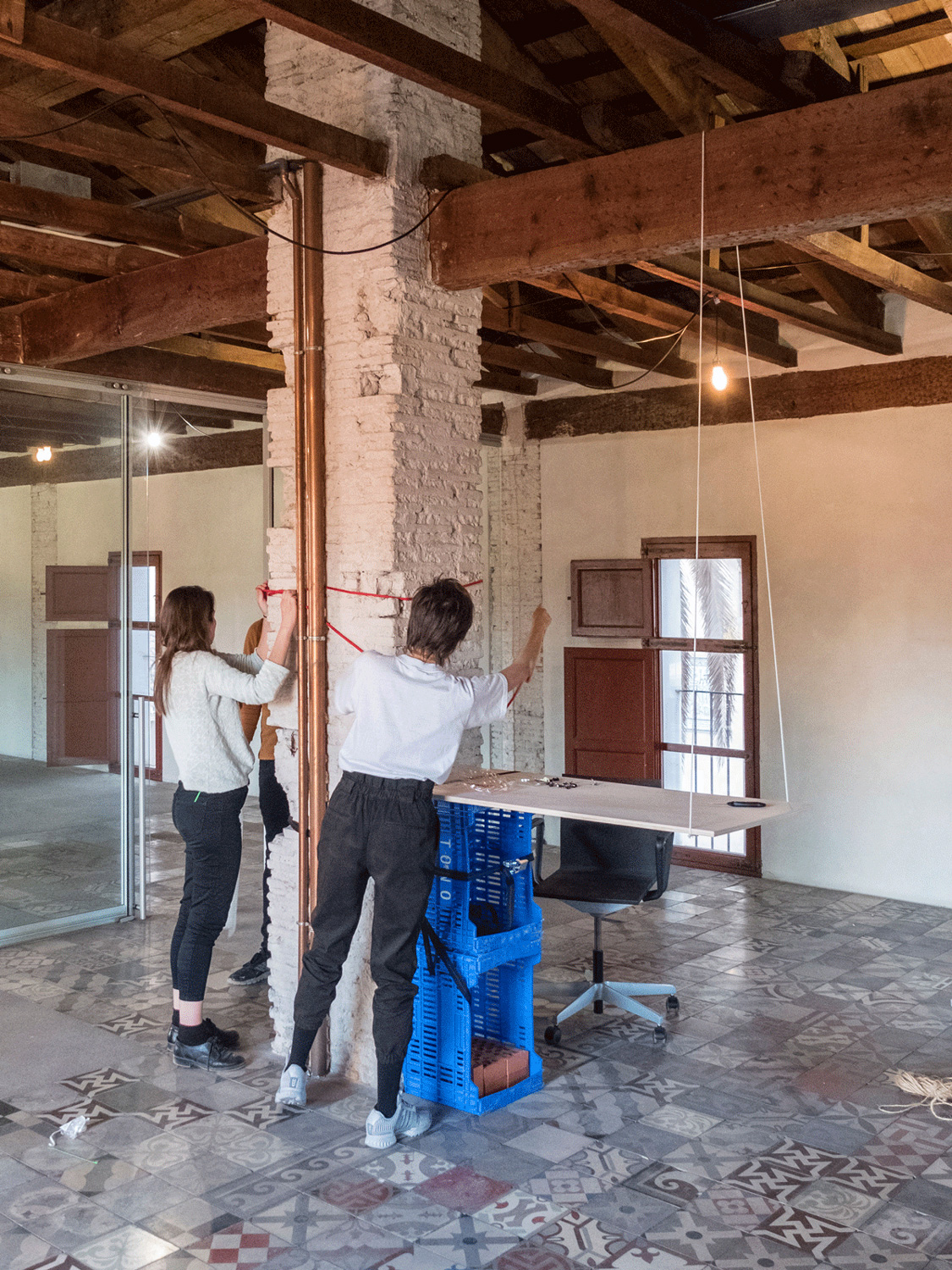 Al cedir en el conflicte, es perd alguna cosa/ to cede in conflict is to lose something is a workshop that was conducted together with Dioni Sanchez in Escola Lateral. The aim of the workshop was to reflect on the pedagogy of the design field and analyze different methodologies, tools, contexts and roles. Through collective exercises and by modifying the space we generated experiences that allowed for shared experiences to develop between the participants. Through a playful process of trial and error we employed images, ideas, texts and objects to arrive at new ways of thinking and doing. Vicent Orts was an instrumental collaborator in the construction of the spaces used in this workshop.