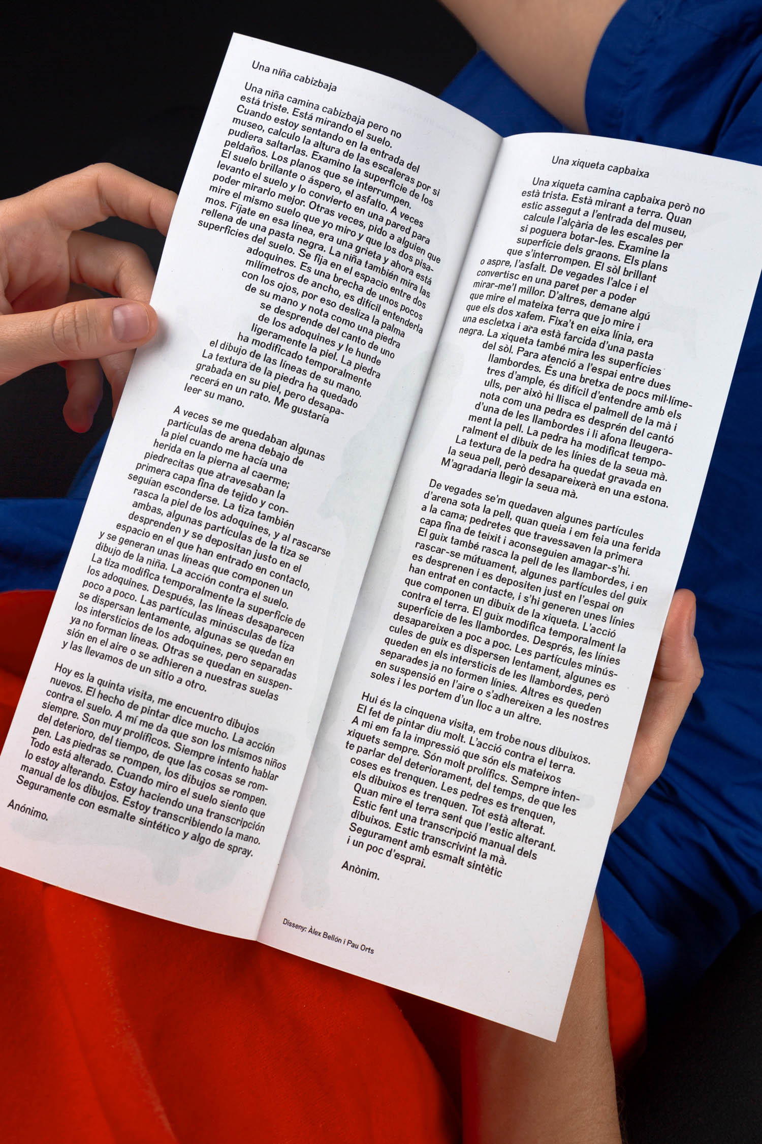Álex Marco presented his project, Lo que pasa en el parque, se queda en el parque/ What happens in the park, stays in the park at the IVAM, Valencian Institute of Modern Art. Each week the artist collected anonymous drawings from the museum’s park, which seemed to communicate with each other and created a transcription of this communication. The drawings were then collated into a pictorial installation on the floor of the museum and presented to the viewer along with a text. I worked together with Álex Bellón on the design of the text and the analyzing images and connecting them with the text. Printed by Do The Print.