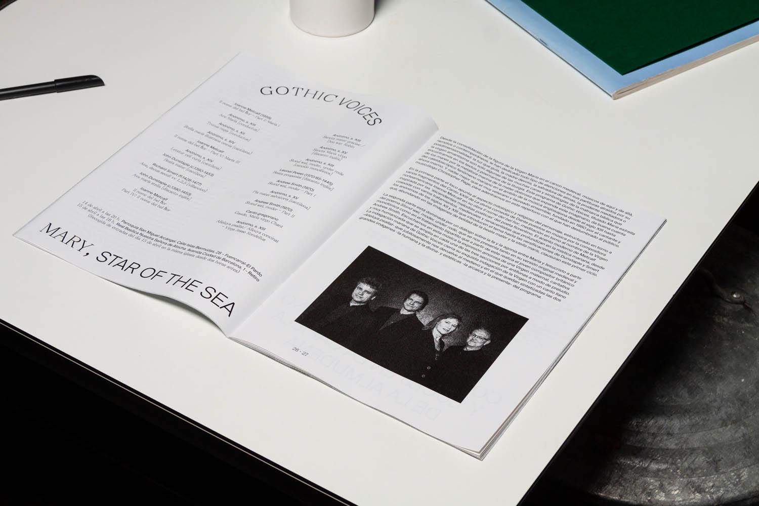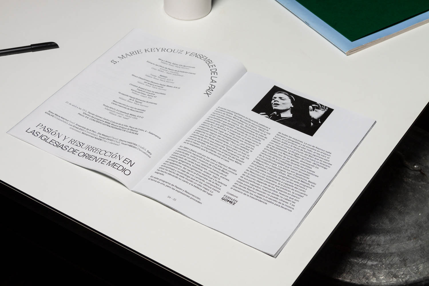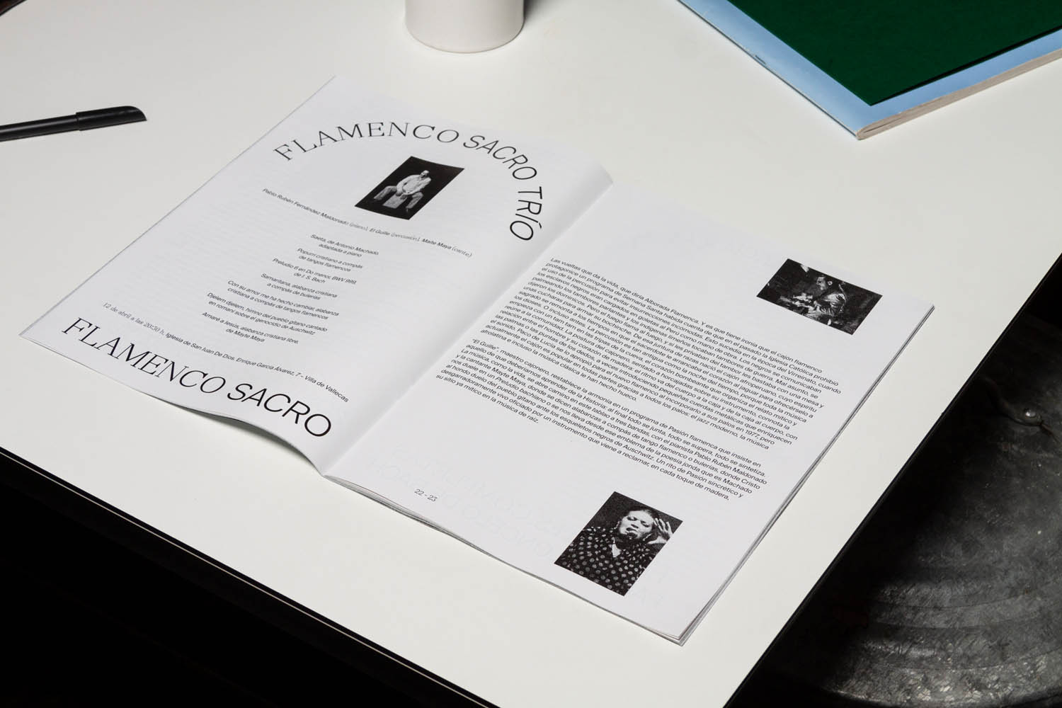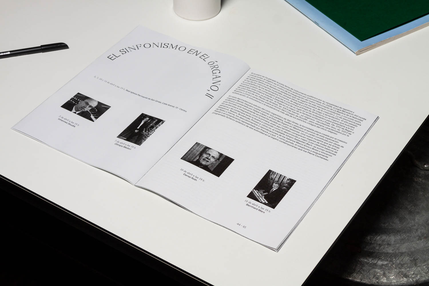 Together with Edu Piracés I designed the official program for The Municipal Government of Madrid’s Sacred Music of Easter. Nacho Padilla, the creative director of the municipal government, stated that the government aimed to universalize the music for the whole city and, for the first time, ensure that more than half of the participants were women and feature a woman as the principal musician. Edu and I took the decision to dispense with religious iconography and designed a program that would appeal to people of all ages, focusing on the music and increasing the visibility of women. In addition, we included natural imagery in the program to bring the readers and spectators closer to the idea of Easter as a spiritual communion with nature.