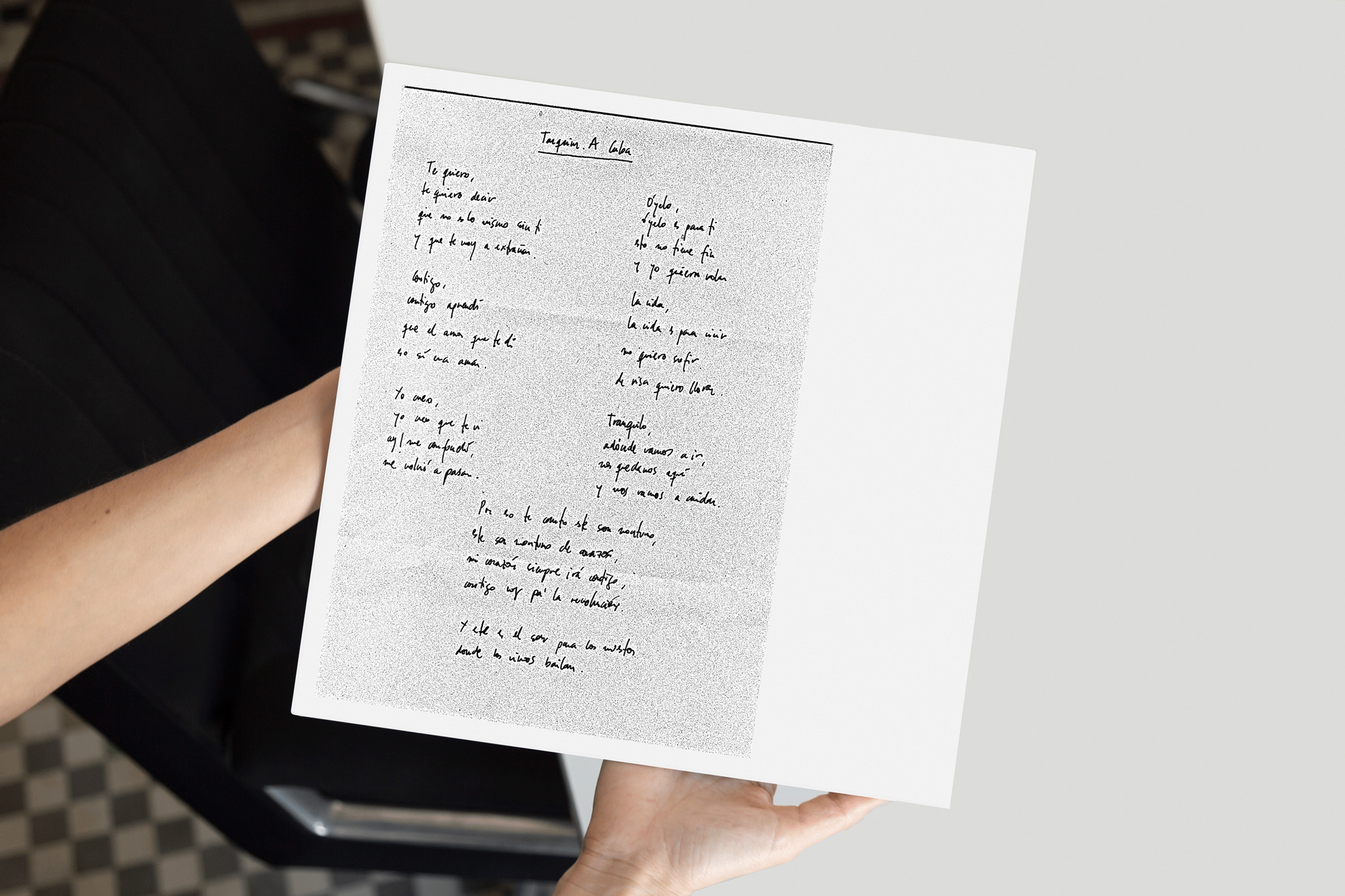 A Cuba is the second album by Tarquim, in which the musician engages with different types of traditional Afro-Cuban folkloric music and jazz. The album is a tribute to the people whom the artist met and learned from on the island who helped bring the album to life. We designed the vinyl with material that the artist kept from his time in Cuba using an image of the sheet of paper where he wrote his most intimate songs for the record sleeve. We felt that we were able to bring the musician closer to his listeners by sharing an intimate and immediate part of the artist’s working process by utilizing the purity of a photocopied image. Collaboration with Alex Bellón.